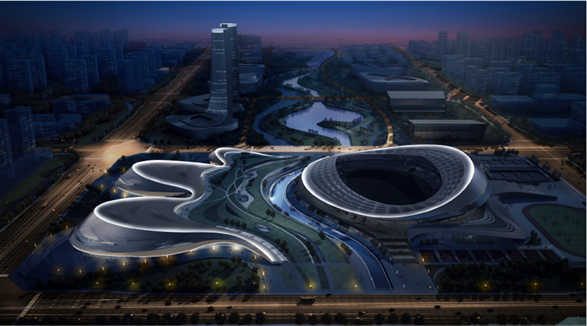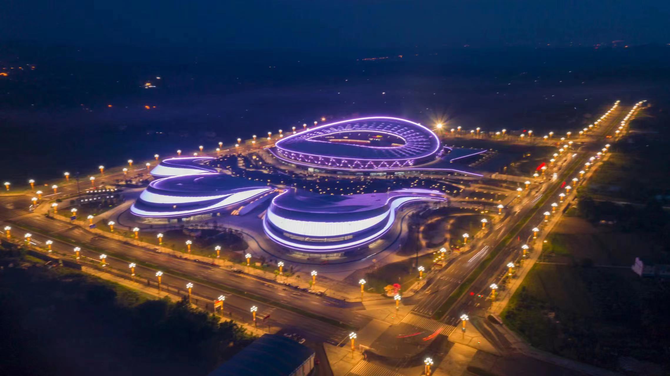 项目地处乐山市苏稽新区,总建筑面积约20.78万平方米。泛光照明工程包括“一场三馆”、室外运动场、产业配套用房、地下车库及设备用房等,其中,“一场三馆”含有可容纳3万人的体育场、7千人的体育馆、两千人的游泳馆和综合训练馆。建成后的奥体中心将作为2022年第十四届四川省运动会主会场,并满足承办全国性大型体育赛事的硬件需求。