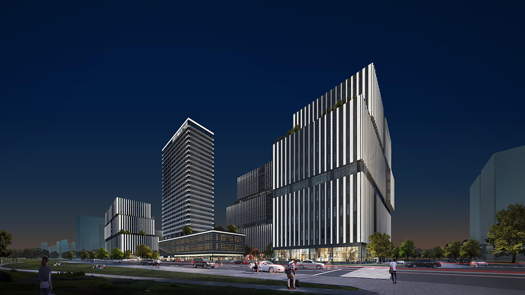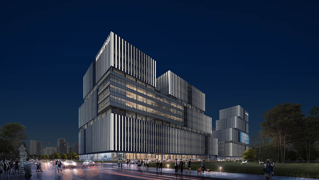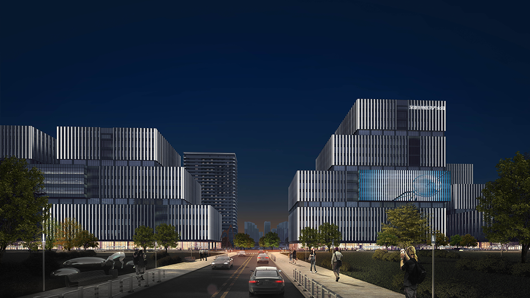 坪山深港生物医药产业园基地北邻丹梓大道城市主干道,交通到达性强。照明设计秉持独特的理念,将象征着科技的理性与生命的活力的色彩,巧妙地与平面构成的艺术形式相结合,为建筑照明赋予了全新的语言体系,使其在夜间能够以独特的姿态诠释自身的魅力与内涵。