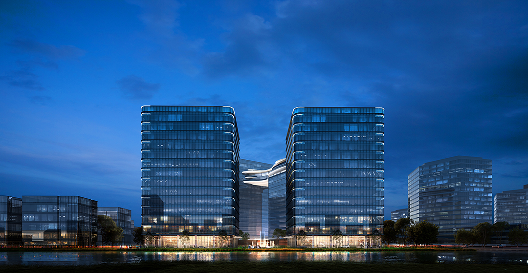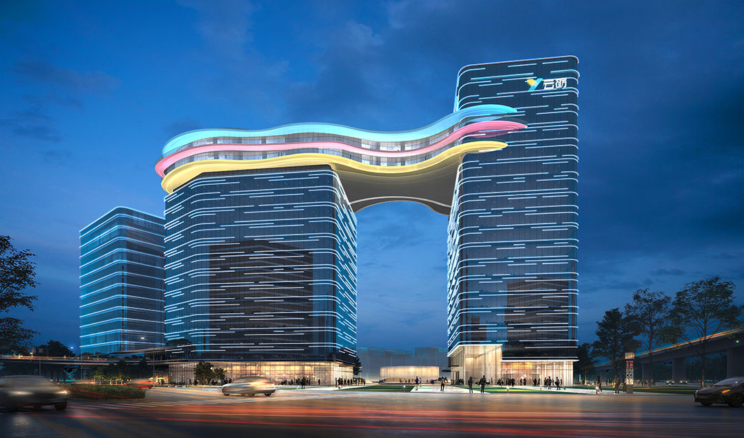 上海市云门数字科技项目位于上海东西发展轴和“长三角数字干线”上重要节点。照明规划提出“波谲云诡,城脉门庭”的设计主题,在打造外部灯光的同时,着重体现云门科技项目的品牌形象,带动企业与城市公共空间人行空间的融合价值,提升云砺企业形象。