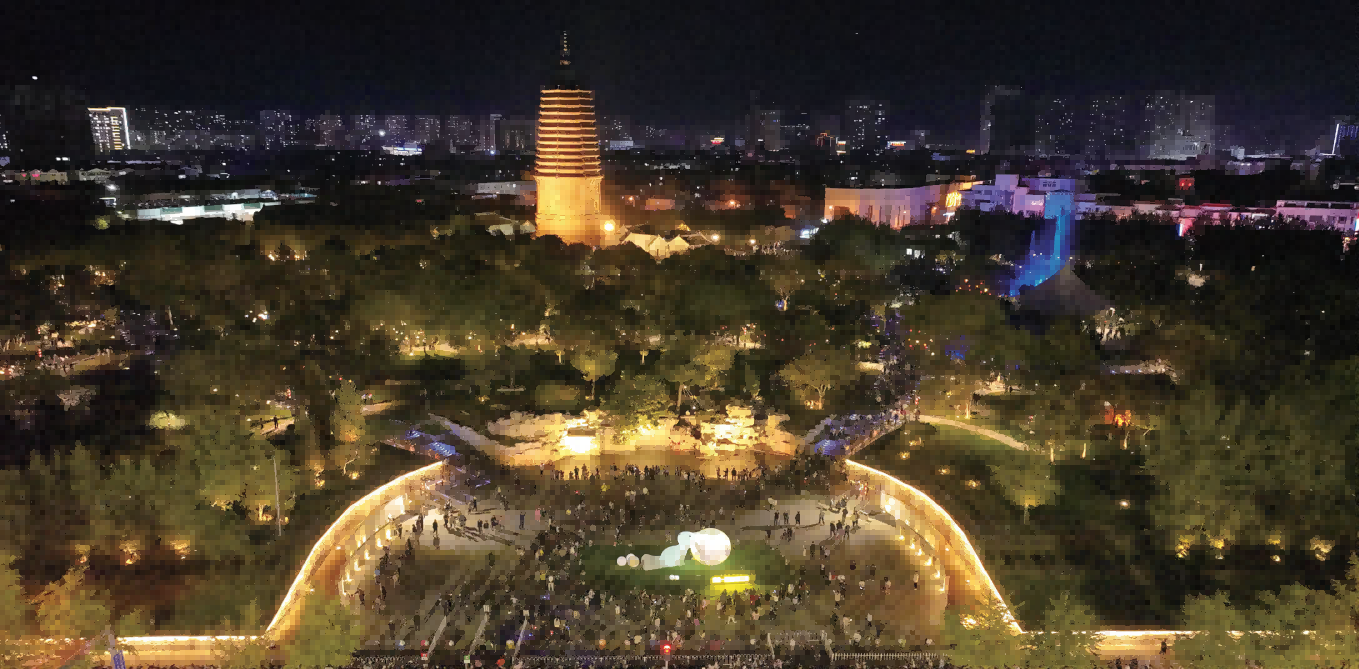 通过古塔公园的改造设计,讲诉锦州古塔的历史,重现锦州的历史文化记忆。通过古塔投影与湖区水秀等现代科技照明技术,展现新旧文化之间的对话交融,重现与活化历史文化场景。