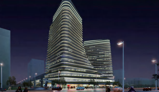 项目位于深圳市南山区,总建筑面积8.7万平方米,地上39层,地下4层,包含办公、商业等多种业态。项目所处的前海桂湾片区重点发展金融服务业,定位国际超甲级写字楼,吸引企业总部聚集,正在打造集中展示前海合作区