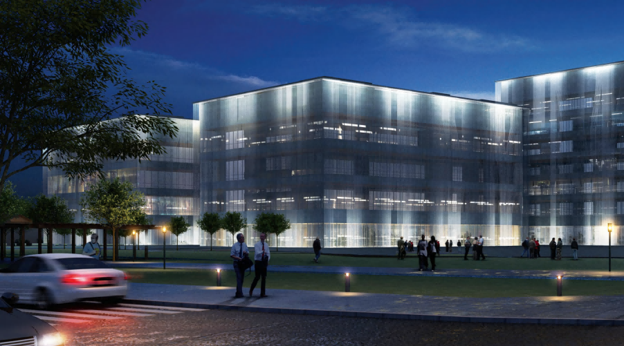项目位于郑东新区副CBD湖心岛,运用了明度较高的白色灯光,勾勒出建筑整体轮廓,打造商务现代感。
