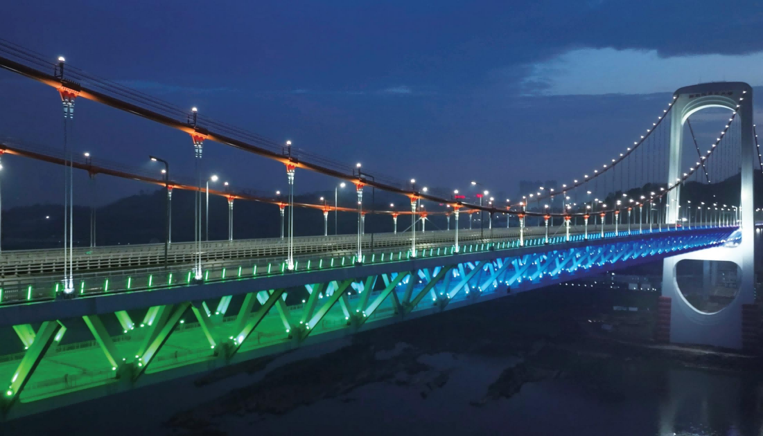 郭家沱长江大桥连接重庆市江北区郭家沱与南岸区峡口镇,全长大约为12.7公里,其中长江大桥长度为1403米,主跨720米,是目前国内跨度最大的公轨两用悬索桥,是重庆市“六横七纵”快速路网“六纵线”的重要组成部分