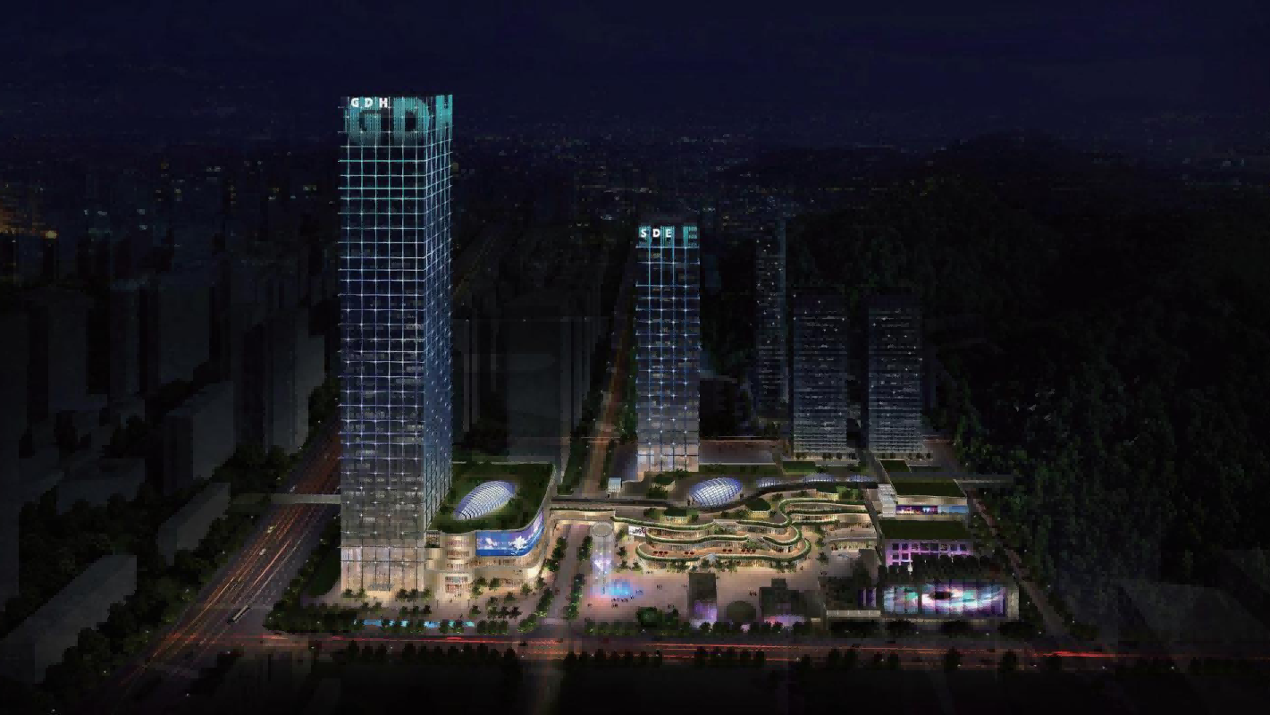 项目办公用楼总高292米,有建筑挑檐的图案,灵感来自钻石的形状,象征着星光闪烁的夜晚照亮了天空。