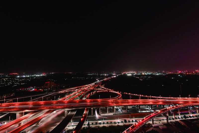 农业路高架的路灯为中央式路灯,即路灯设置在路中间的隔离带上,两盏灯分别照在双向车道上。这种中央式路灯是首次在郑州市市区快速通道中使用。