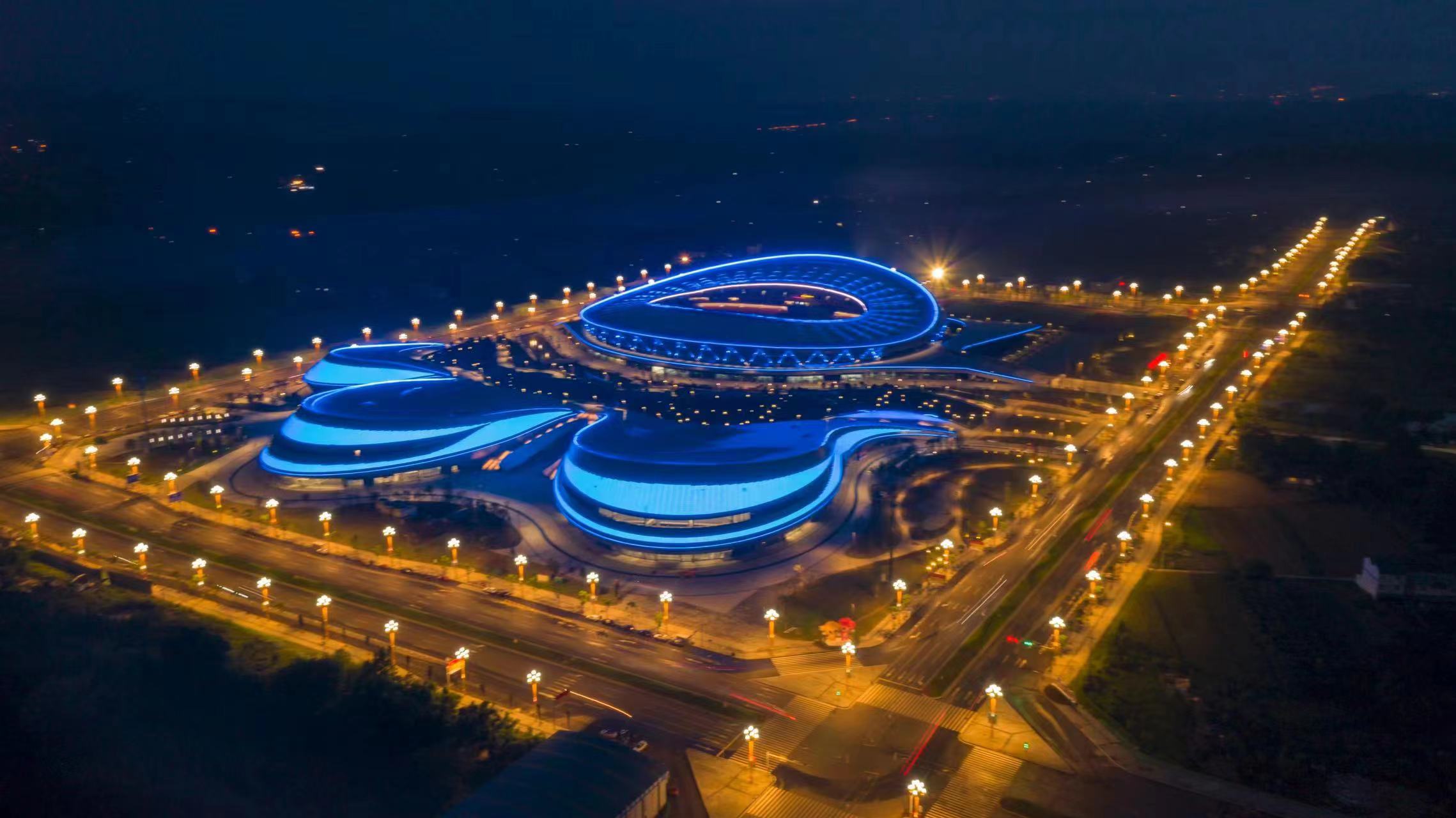 项目地处乐山市苏稽新区,总建筑面积约20.78万平方米。泛光照明工程包括“一场三馆”、室外运动场、产业配套用房、地下车库及设备用房等,其中,“一场三馆”含有可容纳3万人的体育场、7千人的体育馆、两千人的游泳馆和综合训练馆。建成后的奥体中心将作为2022年第十四届四川省运动会主会场,并满足承办全国性大型体育赛事的硬件需求。