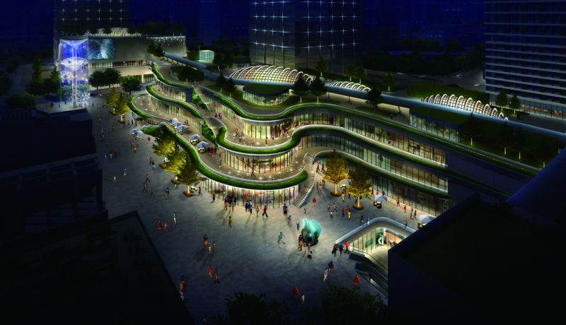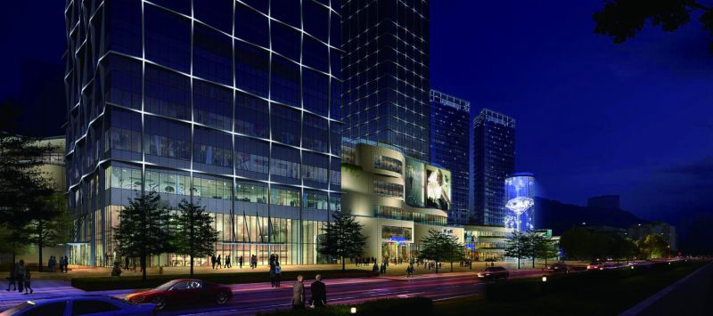 项目办公用楼总高292米,有建筑挑檐的图案,灵感来自钻石的形状,象征着星光闪烁的夜晚照亮了天空。
