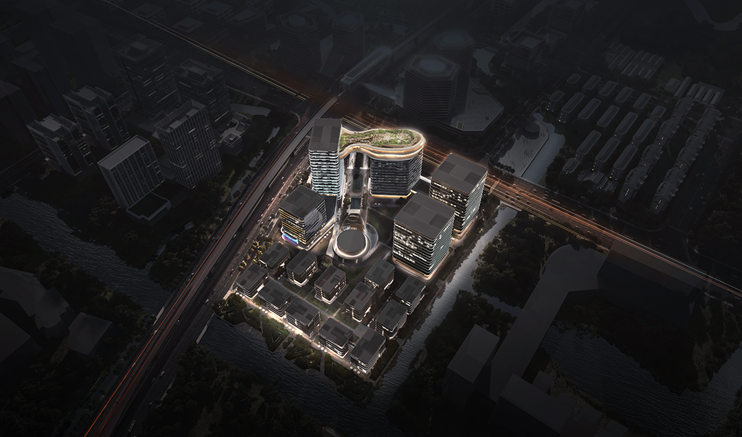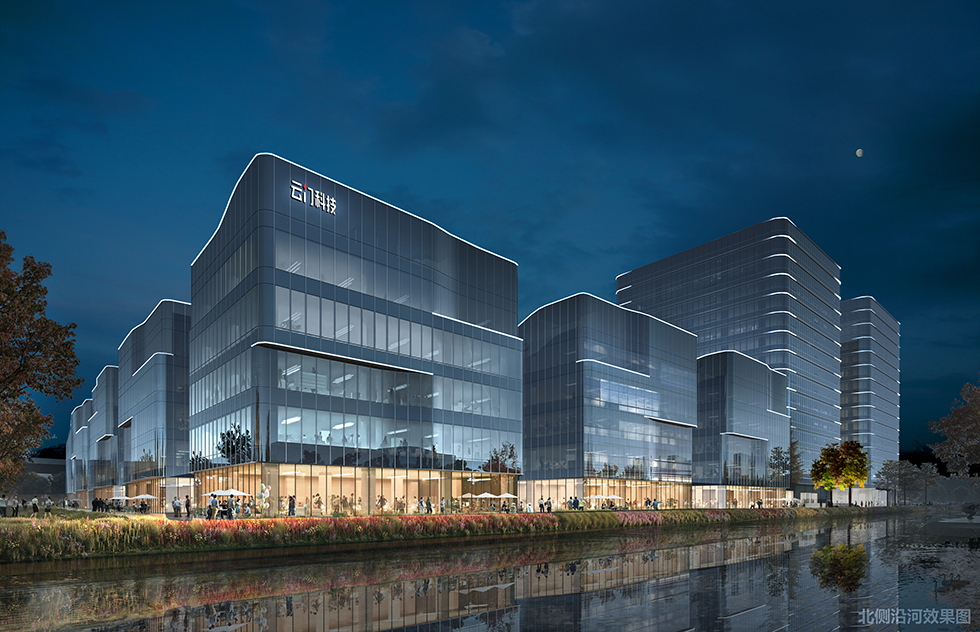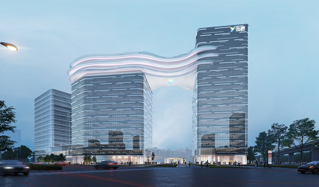 上海市云门数字科技项目位于上海东西发展轴和“长三角数字干线”上重要节点。照明规划提出“波谲云诡,城脉门庭”的设计主题,在打造外部灯光的同时,着重体现云门科技项目的品牌形象,带动企业与城市公共空间人行空间的融合价值,提升云砺企业形象。