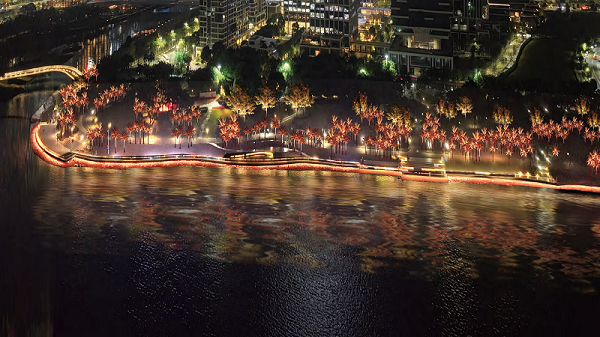 景观带包括桂湾、前湾、妈湾、宝中、大铲湾片区,广深沿江高速、裕安一路桥等,涉及景观岸线长度约7.2公里,提升区域面积约 34.8万平方米;涉及建筑外立面提升面积约8.5万平方米。重点突出滨海岸线、摩天轮、建筑天际线等元素打造独具特色的前海夜景风貌。